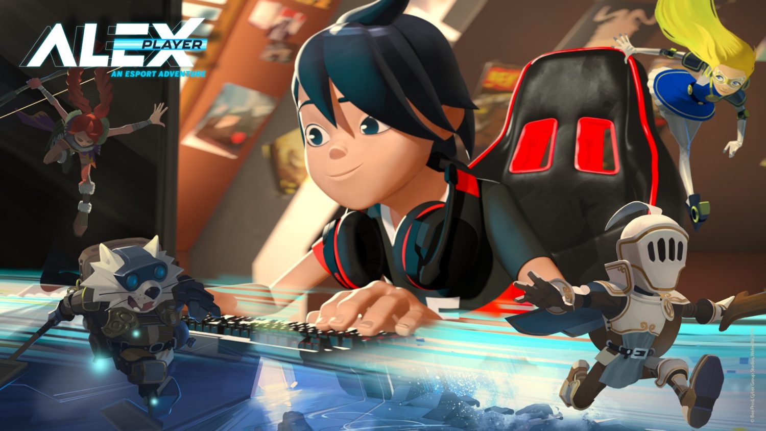 Imagine banks of screens, fingers pounding keyboards, wild cheers, heart-racing action rising to a fever pitch – as 2 teams face off in a packed stadium full of roaring fans… this is no football game or concert, this is Esports, where the gamers are the generation’s idols! This is « Alex Player »: An Esports series with non-stop thrills, fun, passion and laughs on and off the gaming screen. Between training, school, homework, competition, Alex and his friends have their work cut out for them. Even if this fledging team is the world’s most mistmatched combo, together, they’ll make up the latest gaming crew at school, team Moongoose.